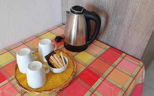 В распоряжении гостей полностью оборудованная кухня, телевизор с плоским экраном, а также собственная ванная комната с душем, бесплатными туалетно-косметическими принадлежностями и феном. Установлен кондиционер. Также есть холодильник, плита и тостер. Кроме того, среди удобств есть кофемашина и чайник.