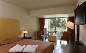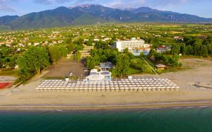 Situated on the beautiful organised beach in Leptokaria, Olympian Bay Grand Resort offers modern bungalows and rooms with a host of leisure activities, including water sports and animation programmes. Olympian Bay Grand Resort enjoys a picturesque location at the foot of Mount Olympus and faces the sea. Spacious rooms are decorated in muted tones and appointed with modern amenities and a spacious private balcony. Start the day with a sumptuous buffet breakfast. Enjoy beautiful views to the sea or the gardens whilst sipping your morning coffee. Relax around one of the 2 outdoor swimming pools or join in with the aerobics classes. Enjoy entertainment from the animation team, or play volleyball on the beach. Umbrellas and chairs are offered at beach or the pool area. The pretty town of Leptokaria is just 15 minutes walk away from Olympian Bay Grand Resort. Should you wish to explore this fascinating area by car, Olympian Bay Grand Resort can arrange car rental and offers free private parking. Pets weighing up to 15 kilograms are allowed at no extra charge, limited to one pet per stay. Pets are strictly prohibited in areas of health interest and must always be under the owner's supervision and on a leash.