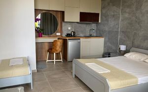 Это был замечательный отель, не далеко от моря. В отеле было чисто, вовремя менялось постельное и полотенца. Отдельная благодарность хозяину Янису, очень приветливый и приятный, во всех вопросах нам помогал .
