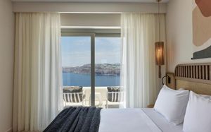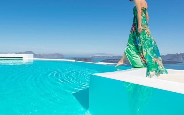 Недавно отремонтированный комплекс апартаментов Apanemo, из которого открывается вид на кальдеру, вулкан и синее Эгейское море, оформлен в традиционном загородном стиле.