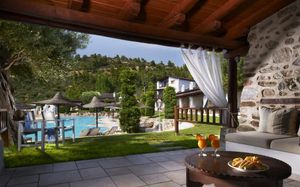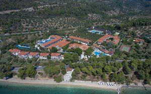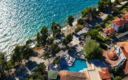 Отель Athena Pallas Village (сеть Acrotel Hotels & Villas) с собственным частным пляжем расположен на побережье города Элия, в 8 км от деревни Неос-Мармарас и в 11 км от города Никити. По утрам в отеле подают сертифицированный греческий завтрак. Гостям предлагают изысканные блюда греческой кухни по программе Acrotel Dine Divine в 5 тематических ресторанах. Один из них, ресторан Hierion, отмечен в 2018 году премией Tourism Awards в категории «Гастрономия» за уникальную рецептуру блюд и оригинальное оформление. Он напоминает «трапезу» — трапезную афонских монастырей. Также гости могут посетить 5 баров. В числе удобств номеров отеля Athena Pallas спутниковое телевидение, кондиционер и мини-бар. Площадь спа-центра отеля составляет 1 200 кв. м. К услугам гостей массажные кабинеты, кабинет маникюра и педикюра, сауна, паровая баня и ванны с солевыми/травяными эфирными маслами. Для всех процедур используются только веганские косметические средства. На территории также есть детские бассейны, теннисный корт, боулинг, настольный теннис, бильярд и фитнес-центр. Для маленьких гостей работает детский клуб. Желающие могут принять участие в различных мероприятиях, заказать экскурсии и обменять валюту. Организуются такие мероприятия, как свадьбы, холостяцкие вечеринки, дни рождения и выставки.