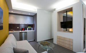 Апартаменты Polis оформлены в современном стиле и обставлены комфортабельной мебелью. В распоряжении гостей кондиционер и балкон. Из некоторых апартаментов открывается вид на Салоники. В большинстве из них обустроена полностью оборудованная кухня, а в других — хорошо оборудованная мини-кухня. В ванной комнате с ванной или душем предоставляются бесплатные туалетно-косметические принадлежности. В определенных апартаментах установлена гидромассажная ванна. В числе удобств телевизор.