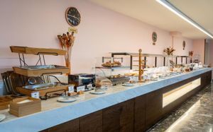 Из зала для завтрака отеля Queen Olga открывается прекрасный вид на залив Термаикос, а в баре отеля подают напитки и кофе. В близлежащем ресторане гости могут заказать блюда по специальным расценкам.