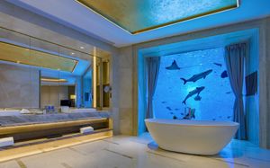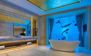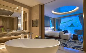 Отель Atlantis Sanya, оформленный по мотивам легенды об исчезнувшем острове-государстве Атлантида, представляет собой единый развлекательный и курортный комплекс с отелем, многочисленными ресторанами, магазинами и аквапарками. Отель расположен в северной части улицы Хайтан-роуд, всего в нескольких минутах езды от центра беспошлинной торговли Sanya International Duty Free City. Из окон открывается живописный вид на Южно-Китайское море. Поездка на автомобиле до железнодорожного вокзала Ялонг-Бэй занимает примерно 30 минут, а до международного аэропорта Санья Феникс — 50 минут. В каждом номере в числе удобств телевизор с кабельными каналами, мини-бар и принадлежности для кофе/чая. Все номера выходят на балкон с живописным видом на море. В собственной ванной комнате установлены ванна и душ. В отеле предлагается услуга круглосуточной доставки еды и напитков в номер. Из окон некоторых номеров можно полюбоваться видом подводного мира. Гости могут заказать успокаивающие процедуры по уходу за лицом и телом в спа-центре AHAVA или посетить круглосуточный фитнес-центр. В аквапарке Aquaventure оборудованы захватывающие дух горки и другие аттракционы. В отеле представлена 21 кухня мира, включая всемирно известный ресторан и бар Bread Street Kitchen & Bar и уникальный подводный ресторан Ossiano.