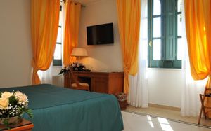 Просторные номера оформлены в классическом стиле и обставлены деревянной мебелью. Некоторые номера украшены расписанной вручную плиткой-майоликой и располагают видом на сад. Также к услугам гостей кондиционер и ванная комната с феном.
