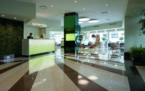 Вестибюль отеля украшают элегантные фрески и красивый фонтан из стекловолокна работы итальянского скульптора Аурелио Джентилио. В конструкции этого экологичного отеля использованы теплоизоляционные материалы и стеклянные панели с подсветкой для сокращения выбросов парниковых газов.