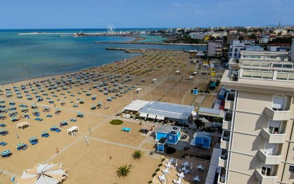 Этот 4-звездочный отель расположен рядом с морем в заливе Ривабелла. Из отеля можно напрямую выйти на пляж. К услугам гостей каждого номера отеля Imperial Beach кондиционер, бесплатный Wi-Fi и ЖК-телевизор со спутниковыми каналами. Во всех номерах есть балкон. На пляже в распоряжении гостей баскетбольная и волейбольная площадки, душ с горячей/холодной водой и детская игровая площадка. Каждую неделю на террасе проводятся мероприятия с живой музыкой. Для гостей сервируют завтрак «шведский стол». Отель окружают самые популярные бары и магазины Ривабеллы. До исторического центра Римини — 1,5 км.