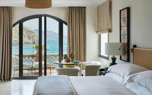 The elegant rooms and suites are decorated with refined fabrics and antique furniture. Each one comes with free Wi-Fi, plus Acqua di Parma bathroom toiletries. Most accommodation comes with a furnished sea-view balcony.