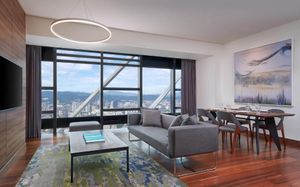 Номера-студии и люксы отеля отличаются просторной планировкой, а в дизайне преобладают природные материалы и цвета. Через панорамные окна гости могут полюбоваться на городской пейзаж. К услугам гостей кровать Westin Heavenly®, фильтр для воды 3M, сертифицированный по стандарту NSF, телевизор с плоским экраном и технологией SMART TV, рабочий стол и энергосберегающее светодиодное освещение. В отделанной мрамором ванной комнате оборудован душ с горячей водой и/или ванна, а также предоставляются бесплатные органические туалетно-косметические принадлежности в многоразовых диспенсерах. Во всех люксах есть собственная кухня, где гости могут приготовить еду на скорую руку.