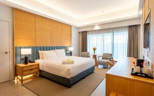 Swiss-Grand Beach Resort Kuantan - Newly Upgraded 5-Star is nestled on the pristine Balok beach 15km north to the east coast town of Kuantan, overlooking the inviting waters of the warm South China Sea. Balok Beach is reputed to be one of the world`s best windsurfing venues and combined with the resort`s leisure facilities, guests can enjoy swimming in the pool with direct access to the beach, providing an idyllic holiday destination for those who want to simply relax and perfect for quiet getaways. With the recent completion of its room refurbishment exercise, the resort offers revitalised and refreshed accommodation options ranging from the spacious Deluxe Rooms or Sea View Rooms to the larger suites.