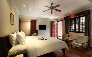 Во всех номерах обустроено патио и собственная ванная комната с биде. В числе прочих стандартных удобств — кондиционер, рабочий стол, чайник, холодильник, мини-бар, сейф и телевизор с плоским экраном. Из некоторых номеров спа-отеля Berjaya Tioman Beach открывается вид на сад. Во всех номерах есть балкон. Все номера укомплектованы постельным бельем и полотенцами.