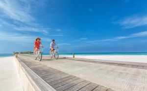 Ржавые велосипеды, довольно средняя кухня, нам дали виллу с очень неспокойным океаном и неровным смытым пляжем, не совсем то что мы хотели, полная бронь при почти пустых ресторанах a la carte, мы еле попали в итальянский ресторан, внизу будут фото) хотя курорт был полупустой, оч странная система