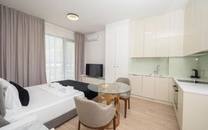 В каждой единице размещения имеется собственная ванная комната и душ, а также установлены кондиционер, холодильник и телевизор с плоским экраном. В некоторых единицах размещения обустроена кухня с посудомоечной машиной, духовкой и плитой.