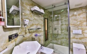 В туалете крышка на унитазе не по размеру и не была зафиксирована, но после как мы об этом сказали, нам заменили на другую. Двери купе шкафа плохо раздвигались. Завтрак нам не понравился, скромный, однообразный, он был в другом ресторане через дорогу, выбрать можно было что-то одно из 5 наименований, + 1чай или 1 кофе. Немного смутило окно в ванной комнате, можно видеть не только как ты моешься, но и как ты сидишь на унитазе.
