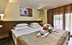 Отзывчивый и дружелюбный персонал. Уборка в номере каждый день. Удобная большая кровать. Есть свой бассейн на заднем дворе. Отель недалеко от пляжа. Рядом есть супермаркет. Можно заказать трансфер до аэропорта Тиват за 55€