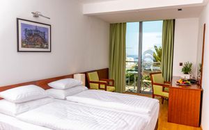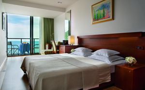 Set on a hill overlooking the 2-km long Becici Beach, the Eurostars Queen of Montenegro is 4 km away from Budva. It features a gym, spa area and two swimming pools. Guests can sample Mediterranean and international specialities at the elegant lobby lounge, poolside restaurant, taste various buffet dishes in the main show kitchen restaurant. Featuring a panoramic terrace with view of the Adriatic Sea, the lobby bar serves a wide range of alcoholic and non-alcoholic drinks as well as snacks. The outdoor swimming pool is situated on a spacious terrace, boasting with stunning sea views. All rooms come with hardwood floors, flat-screen cable TV and air conditioning. Free wired internet is provided. The bathrooms have showers, toiletries and a hairdryer.