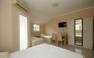 Во всех studio: терраса, кондиционер, спутниковое ТВ, мини-кухня , туалет , фен, чайник,