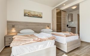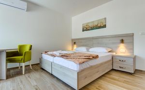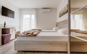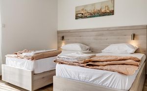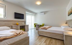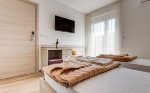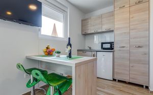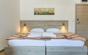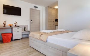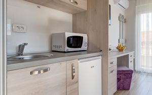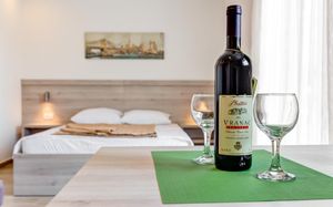 Отличные апартаменты по приемлемой цене, уборка и смена полотенец каждый день, WiFi, есть посуда ложки, вилки, тарелки, стаканы,нож. Очень доброжелательный персонал. Недалеко от пляжа, рядом много магазинов и кафе. Рекомендую.