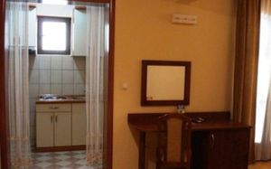 Двухместный апартамент-студио состоит из комнаты, совмещенной с кухней, санузла и террасы. В апартаменте: двуспальная кровать (в апартаменте №21 с возможностью разделения),