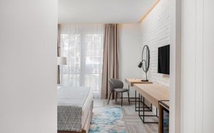 От начала и до конца пребывания в отеле все было на высочайшем уровне комфорта. Ещё до регистрации нас пустили припарковать авто на подземный паркинг, а там встретил сотрудник, предложил помощь с багажом и проводил на ресепшн. При регистрации мы узнали, что нам бесплатно повысили категорию номера, нам вручили ваучеры на бесплатный напиток в баре, потом проводили в номер. В номере была приветственная открытка и комплимент в виде пакетиков со сладостями, очень приятно. Посетили спа - там все чисто, современно, приятное обслуживание, удобные раздевалки и шкафчики с кодовым замком, бассейн, джакузи, несколько разных саун, хамамов и.т.п. Хамам горячий и влажный, как и должен быть, в отличии от того, как он выглядит во многих черногорских отелях. Завтрак в виде шведского стола, разнообразный и вкусный, с приятным обслуживанием официантов. Атмосфера отеля в целом очень интересная и уютная, тут гармонично сочетается древность и комфорт. В общем, тут шикарно и хочется побывать ещё.