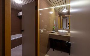 Отель не соответствует 4☆. Ремонт бы не помешал. Пол в ванне холодный, а тапочек нет. Звукоизоляция слабая.