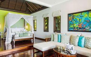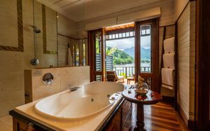 Проснувшись в большой кровати с балдахином под звуки набегающих на берег волн, гости смогут расслабиться в гидромассажной ванне.