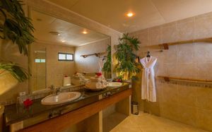 Услужливый персонал, спасибо им большое, очень старались, чтобы мы были довольны. Я праздновала здесь свой день рождения, муж заказал сюрпризом букет - сделали всё идеально, я ничего не заподозрила и цветы были очень красивые. Оказалось, что в мой день специальная площадка для романтического ужина была уже забронирована, но нам организовали красивое место в баре с видом океан, мы остались довольны, спец.ужин тоже был на высоте, очень много еды, мы всё не съели. Поздравили тортиком - не смогли съесть сразу, упаковали с собой в номер. Очень мило поздравили меня, спасибо, было безумно приятно. Вкусные недорогие коктейли в баре, в номере у меня была бутылка шампанского - дали ведро со льдом бесплатно, чтобы его охладить, и бокалы. Вкусная еда в ресторане, красивая территория и зона лобби, номер на высоте, всё новое, чистое, кондиционер работает на ура, плюс есть потолочный вентилятор. Оба бассейна супер, один на пирсе, который похож на корабль с парусами. Считаю, что соотношение цена-качество очень хорошее.