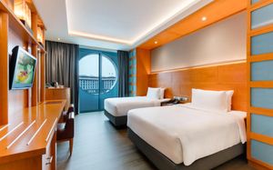 Spacious rooms at Resorts World Sentosa - Hotel Michael are fitted with floor-to-ceiling windows that offer views of the harbour. Amenities include a flat-screen cable TV and a safety deposit box. Stylish bathrooms feature mosaic tiles and come with hot shower facilities. Toothpaste, toothbrush and toiletries are provided.