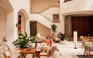 Апартаменты в отеле Zel Costa Brava светлые, пол в них выложен плиткой.