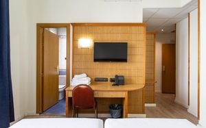 All rooms are fully air conditioned and heated, with satellite TV and a work desk. Also included is an en suite bathroom with a hairdryer and a modern shower.