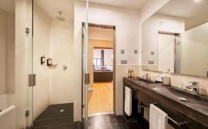 The hotel rooms include a flat-screen satellite TV, air conditioning, heating, a safety deposit box, a desk, and a minibar. The private bathroom includes a bathtub or shower, a hairdryer, and complimentary toiletries.