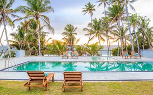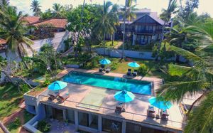 Отличный отель прямо на берегу океана! Семейный номер очень просторный с огромной террасой. Персонал очень дружелюбный, во всем помогают! Завтраки вкусные и сытные, фрукты, сок, яйца на выбор, добавки к ним, хлеб с джемом и маслом и десерт. Можно также пообедать и поужинать. Ужин из сет меню стоит 5 т. рупий на одного. Территория ухоженная, красивая! Бассейн отличный, дети были в восторге! Пляж очень красивый, с камнями и офигенными закатами! Плавать в океане конечно невозможно, волны большие, но покататься на волнах и поплескаться в «ваннах» перед камнями отлично, особенно детям! Недалеко от отеля есть супермаркет. Если выйти на пляж и пройти вправо за большие камни, где качели висят, там очень классное кафе, где можно вкусно и недорого поесть!