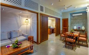 В светлых и просторных номерах отеля Cinnamon Bey имеется собственный балкон. К услугам гостей открытый бассейн. Номера оборудованы кондиционером, мини-баром, сейфом и телевизором со спутниковыми каналами, а окна обращены на юг. Кроме того, в номерах есть собственная ванная комната с душем и феном. Отель Cinnamon Bey находится примерно в 55 км от международного аэропорта имени Бандаранаике. Гости могут посещать фитнес-центр и спа-центр Svastha Serene с сауной и паровой баней. Кроме того, предлагаются услуги прачечной, гладильные услуги и трансфер от/до аэропорта.