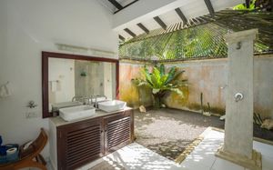 Жили на отдельной вилле, номер Ginger. Практически отсутствует естественное освещение, в номере всегда сильный запах сырости. Вилла полностью находится под крышей и в окружении деревьев, солнце на открытые участки не попадает, вещи почти не сохнут. Санузел и сантехника требуют обновления: лейка душа текла, биде было расколото, стульчак сильно изношен. Очень шумный кондиционер, из-за этого вообще его не включали.