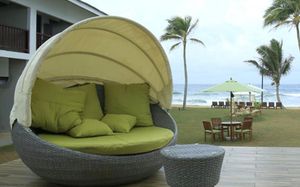 9. Пляж оборудован интересными лежаками размером с двуспальную кровать с матрасом, убитыми но сносными. Волны на всем пляже не для купания с детьми однозначно. Если вовремя не сгруппироваться может приличного ударить.
