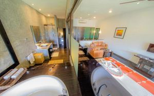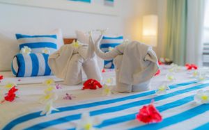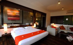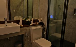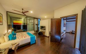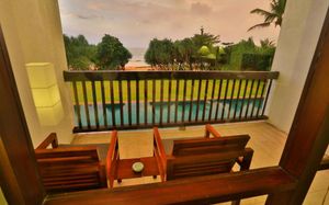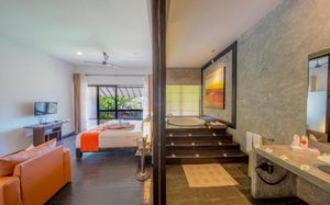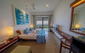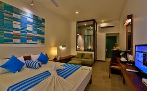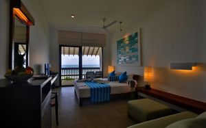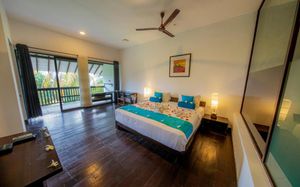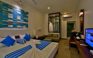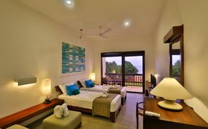 Всё было неплохо, кроме того, что букинг написал, что ребёнок живёт бесплатно и 12-летнему ребёнку негде было спать (а варианта проживания 3 человека не было вообще), пришлось оплатить дополнительно кровать, но места в комнате практически не осталось. Отель сначала попросил оплатить завтрак ребёнку, потому что ей 12, а не 6 (хотя это было изначально указано при бронировании). Но это всё мелочи. В день отъезда в аэропорт вызвали такси, ждали 15 минут, а потом оказалось, что такси нельзя вызывать. Местные водители тук-туков, которые стоят напротив отеля не пускают :чужих". Требовали с таксиста 3000 рупий или разобьют машину. И главное, что сотрудники отеля в сговоре с ними, и также отвечают, что нельзя такси подъехать. Это что за возмутительная практика???? Пришлось 30 минут потратить на скандал. В итоге испорченное настроение. Считаю, что отель не должен поддерживать такие порядки и бороться с этим. Ну и если говорить в целом, то нигде нет никаких ковриков, везде таскается песок по всему номеру и никак не предусмотрено его убрать.