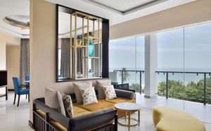 Очень понравился отель. Тихое, уединенное место. Нет никакого столпотворения людей ни на завтраках, ни в бассейне. Хотя было 100% заселение гостиницы. Отель старается и держит марку. Везде чисто. Check in/ check out очень быстрый. Депозит при заселении не требуется. Завтраки хорошие. Очень много разнообразных соусов, джемов, выпечки. Много острых блюд . Если спросить у поваров , они подскажут какие блюда не острые. Имеются свежевыжатые соки. Всё очень вкусно. Стаф очень услужливый, вежливый. Сервис на высоте. Номера просторные и удобные. Секьюрити на входе сканируют багаж. Это тоже хорошо для безопасности жильцов отеля. Бывают развлекательные вечерние шоу. На крыше отеля находится бар, откуда открывается превосходный вид на море. Думаю, этот отель хорош тем туристам, которые не любят шумные места.