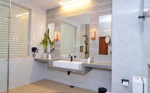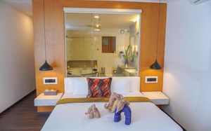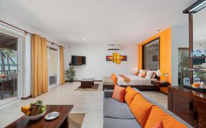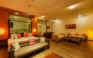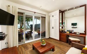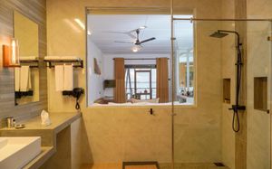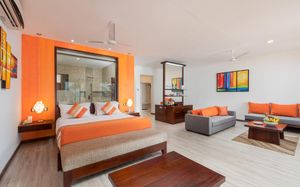 Все номера и люксы с деревянным полом украшены произведениями искусства. В числе удобств — кондиционер, телевизор с плоским экраном и спутниковыми каналами (в люксах имеется Netflix), мини-бар, принадлежности для чая/кофе, телефон и сейф. Кроме того, в распоряжении гостей собственные мини-бассейны. В собственной ванной комнате с гидромассажной ванной и тропическим душем предоставляются халаты и тапочки. По прибытии гостям предоставляется корзина с фруктами, выбор подушек и бесплатный Wi-Fi.