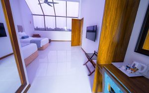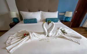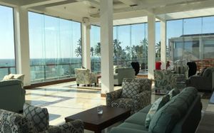Отвратительная встреча, в 16 номер был не готов, в лобби воняло чем-то неописуемым, в номере явно курили и пытались скрыть это тяжелым и сладким освежителем воздуха. Воду, которую приносят в номер, пить невозможно - она воняет, протухла. Номер в ужасном состоянии, душевая просто разваливается, вода течет из-под ванной. Спортзал не работает. При выходе к океану - тебя достают местные каждый раз, пытаясь навязать разговор и предлагая рыбалку. Они прямо дежурят у выхода из отеля - это ужасно раздражает. На песке огромное количество мусора и бродячих собак. Грязно вообще все - на этаже, все окна, номера, сам отель. Отель находится на побережье, где когда-то до ковида были туристы и была жизнь, а сейчас все отели и рестораны вымерли, в деревне смотрят на туристов как на ходячий кошелек, выходить из отеля просто некуда.