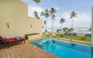 Нам всё понравилось! Небольшой уютный, тихий, спокойный отель. Хотя в субботу много местных в него приезжает, проводят шумные корпоративы-тимбилдинги. В субботу, воскресенье и понедельник в ресторане играет живая музыка, в т.ч. русская. Музыкантам - огромное спасибо! Питание в ресторане достойное, есть и европейская кухня, и ланкийская (карри всех видов и цветов) - рыба в карри, курица в карри, баранина в карри, кальмары в карри, чечевица в карри, огурцы в карри, баклажаны в карри , овощное рагу в карри, манго в карри. Ну конечно же рис, лапша, паста и даже мини-пицца. На завтрак омлет/яичница по заказу. В субботу в ресторане готовят барбекью - креветки, кальмары, курица, овощи. В ассортименте фрукты: манго, ананасы, папайя, арбузы, бананы. Выпечка: на завтраке круассаны, слойки, кексы; на ужине пироженки, пудинги. На первом этаже номера Делюкс с прямым выходом с террасы к бассейну. На втором этаже номера Ocean view, но вход в них с первого этажа (в номере лестница). В Оушен Вью огромная ванная комната (фото # 1) с душевой, ванной, большим умывальником. В нашем номере не работал фен, но мы абсолютно не расстроились и даже не обращались на ресепшен насчёт него. Большой балкон с креслами и прекрасным видом на закат (фото #4). На третьем этаже номера "Президентский люкс", часть из них двухэтажные и собственным бассейном - это как объединëнные номера Делюкс и Оушен вью. С балкона второго этажа президентского номера отличный вид (фото #3). Мебель немного уставшая, матрасы жёсткие. Полотенца меняли каждый день, постельное бельё меняли раз в 3-4 дня. Ежедневно пополняли воду (0,5л/чел) и шампуньки/гели/лосьоны. В ТВ каналов много, русских каналов нет. Бассейн примерно 60 метров, из них "лягушатник" метров 10 и основная часть примерно 50 метров глубиной примерно 13-1,4 метра. В округе практически нет кафе, кроме "Тамара Блю Лобстера", один раз там пообедали сразу по приезду.