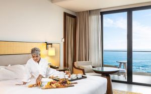 Из всех номеров открывается панорамный вид на Индийский океан. В них есть ванна и балкон. Кроме того, в каждом номере установлен 55-дюймовый телевизор со светодиодной подсветкой, спутниковыми каналами и технологией Smart TV. В номерах имеется кушетка. В каждом номере собственная ванная комната с ванной укомплектована халатами, тапочками и бесплатными туалетно-косметическими принадлежностями. В люксах выделена обеденная зона.