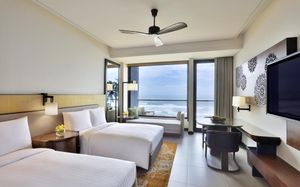 Курортный спа-отель Weligama Bay Marriott расположен прямо на пляже. К услугам гостей номера рядом с пляжем, детский бассейн, работающий круглый год, бассейн для релаксации и открытый плавательный бассейн. Гости могут заняться водными видами спорта, посетить близлежащий форт Галле или отправиться в поездку для наблюдения за синими китами. На территории курортного отеля разбит сад с садовой мебелью. В числе прочих удобств — мини-бар, ванны и гладильные принадлежности.