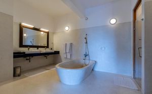 В номерах курортного отеля Weligama Bay постелены деревянные полы и установлена мебель из темного дерева. Номера оборудованы кондиционером, сейфом и мини-баром. К услугам гостей телевизор с плоским экраном и DVD-плеер, а фильмы можно взять в DVD-библиотеке отеля.