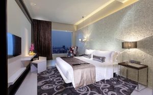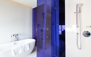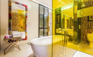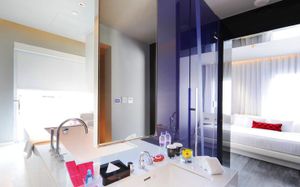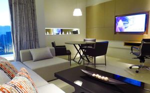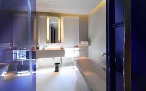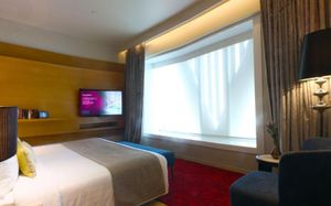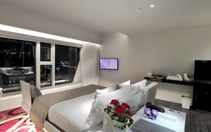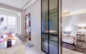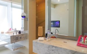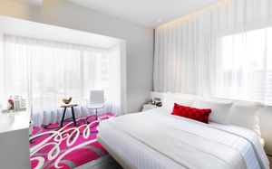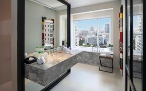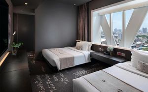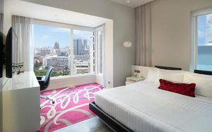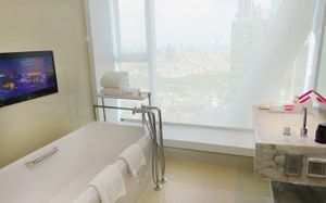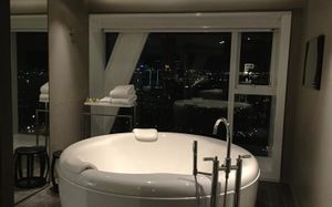 Шикарное расположение: метро и автобусная остановка в двух минутах ходьбы, местная круглосуточная "Семёрочка" в пяти минутах. Понятливый персонал, открытый бассейн как в кино с видом на город (небоскрёбы), завтраки вообще огонь ???????????? Мы брали комнату с двумя кроватями на 15 этаже с панорамными окнами и видом на бассейн. Хотя специально не просили такой вид, но красоту оценили. Порадовало, что завтраки с 6.30 до 10 утра. То есть и перед самолётом поесть смогли и после тусовки - выспавшись - попадали на завтрак. Вообще комнаты просторные, не чувствуешь давления стен. Было два санузла. Один с отдельностоящей ванной и душевой, а второй с унитазом и гигиеническим душем. Огромные раковины со столешницами и зеркалами - очень удобно! Я сама в сантехнике работаю и прям глаз радовался глядя на смесители, ванну и унитаз Toto (премиум сантехника японская). В общем отдельное спасибо за возможность полежать в ванне за 1.2 миллиона рублей и попивая вино встретить закат ????❤️ Бар на крыше - просто бомба! В наш первый день ещё и салют запускали. Ещё хочу отметить хорошую шумоизоляцию, мы соседей вообще не слышали ни разу и на нас никто не жаловался ???? хотя мы были очень громкими, поскольку приехали на концерт любимой группы и постоянно на полную включали музыку и репетировали хореографию из клипов для фанатских батлов ????