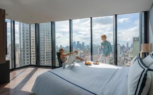 The hotel comprises 153 stylish guest rooms, all offering magnificent views of Bangkok's skyline and equipped with essential amenities for a comfortable stay, including air-conditioning, a 50" Sharp 4K UHD Android TV, a minibar, en-suite bathrooms, and standard room amenities.