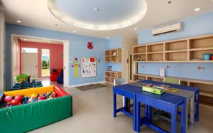 Детская кровать, детские стульчики в ресторане, игровая площадка, бассейн, ...