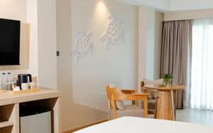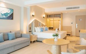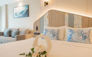 Чистота не только в номере, но и по всей территории . Персонал отзывчивый и дружелюбный. Завтраки разнообразные и вкусные. Пляж чистый и большое количество лежаков . Wi-fi ловит идеально .