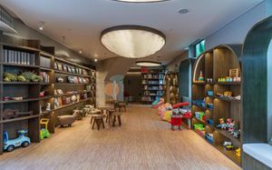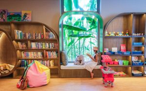Детская кровать, детские стульчики в ресторане, игровая площадка, бассейн, ...