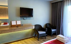 В каждом номере есть телевизор, сейф, собственный балкон и ванная комната с горячим душем. На полу уложен паркет.