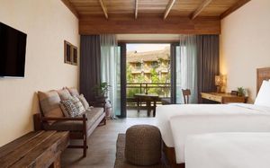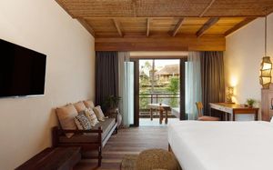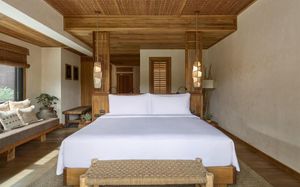 Ideal for luxury seekers, our resort features 168 spacious rooms & villas, providing serene sanctuaries with exceptional service. For an enhanced experience, guests can choose from rooms with direct pool access, suites with panoramic ocean views or one of the villas with its own private pool. Our commitment to caring for the planet is evident in our use of recycled railway sleeper woods, hand-plastered walls, and our mission to positively impact local communities.